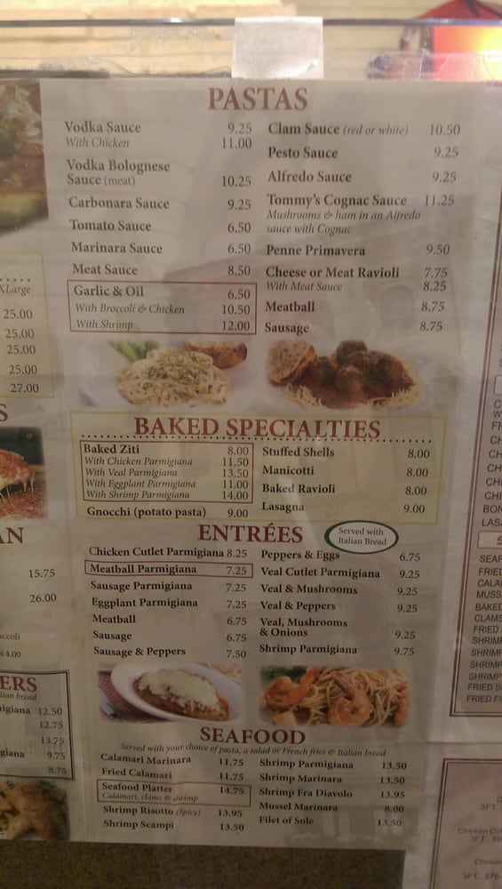 Served with your choice of pasta, a salad or french fries and Italian bread.